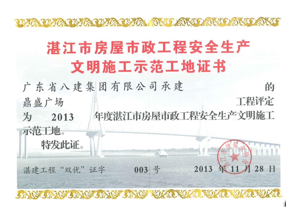 廣東省AA級(jí)文明標(biāo)準(zhǔn)化工地證書(shū)